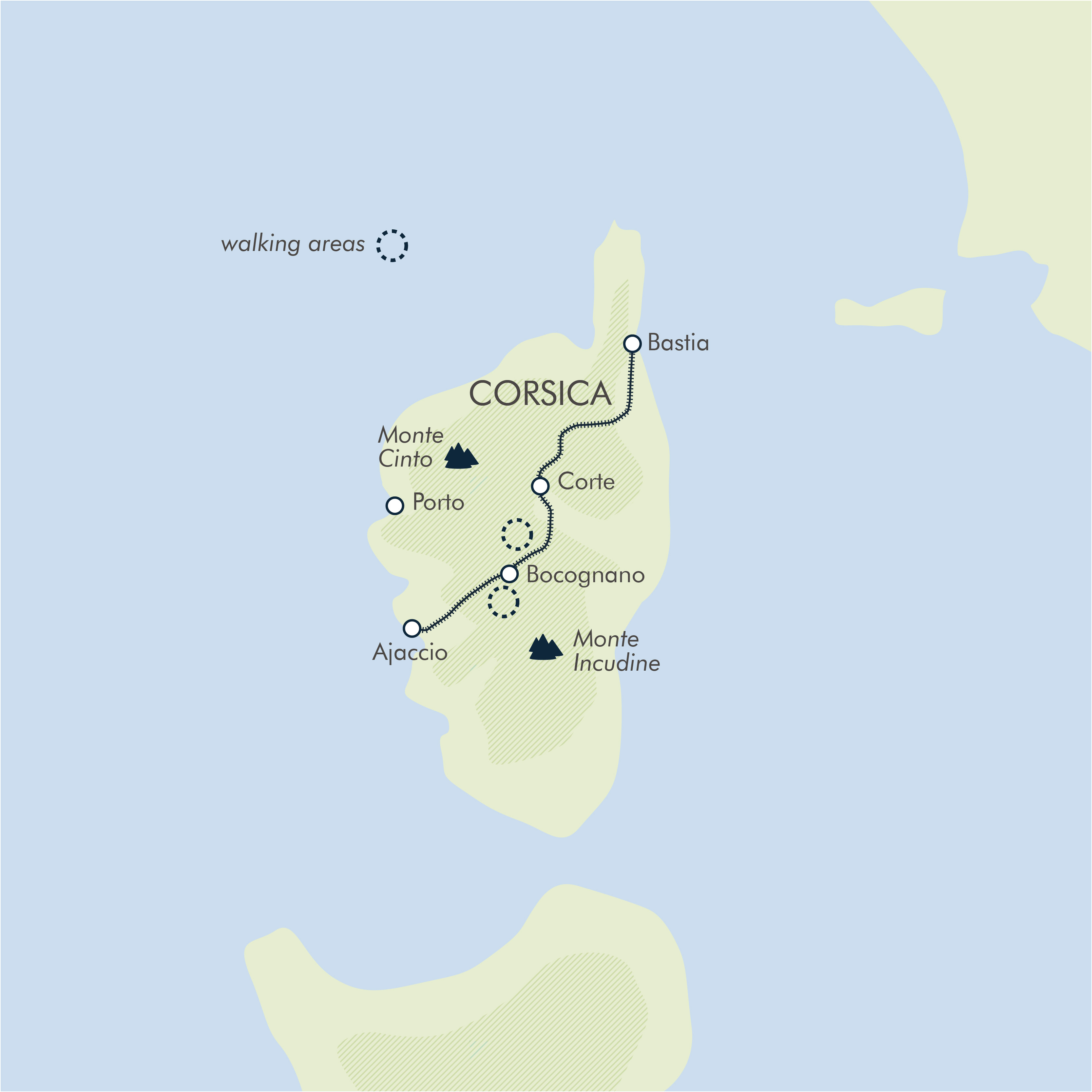 Terrain: Corsica has a network of long-established trails and walking paths, most well maintained and way marked. Even so, paths are rocky and walking boots with good ankle support and tread are essential.