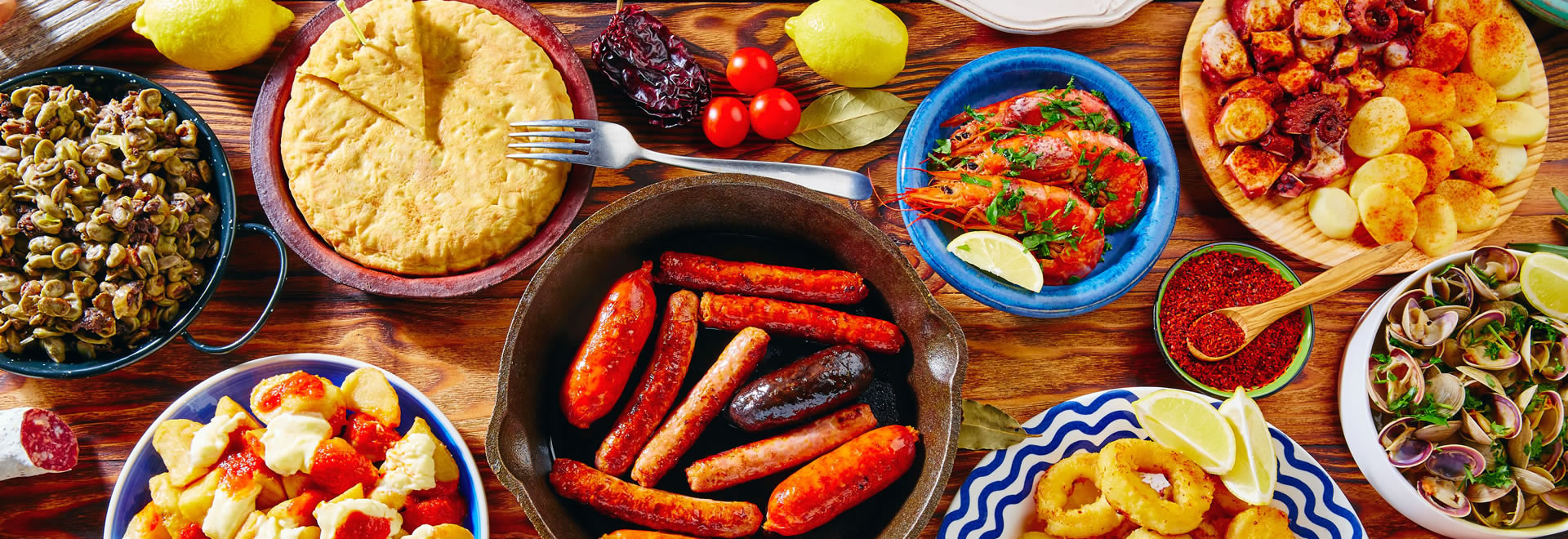 Vin og god mat er nasjonal lidenskap i Spania og det med god grunn. Spansk matlaging bygger på nøkkelprinsippene; stor variasjon, tradisjonelle oppskrifter overlevert gjennom generasjonene og en medfødt vilje til å eksperimentere og se hva som kommer ut av kjøkkenlaboratoriet. Du kan oppleve det beste måltidet noensinne med tapas i en bar hvor alle roper for å kommunisere eller med et måltid tilberedt av en kjendiskokk i omgivelsene til en Michelin-restaurant. Uansett hvor du velger å spise, så venter det en fantastisk bredde av gastronomiske opplevelser på deg.