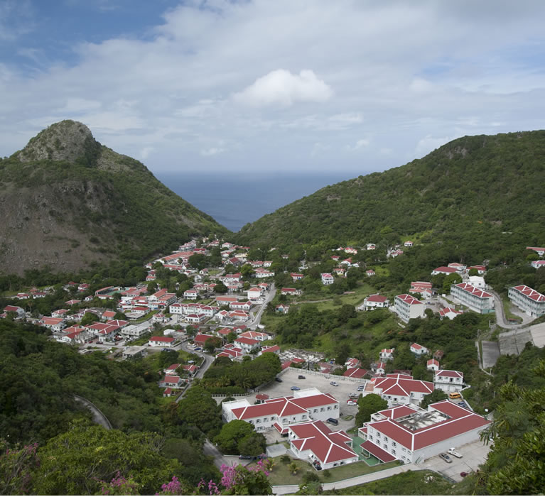 Tett vegetasjon dekker det meste av Sabas dramatiske fjellsider og daler og inniblant dette finner du små bosetninger.