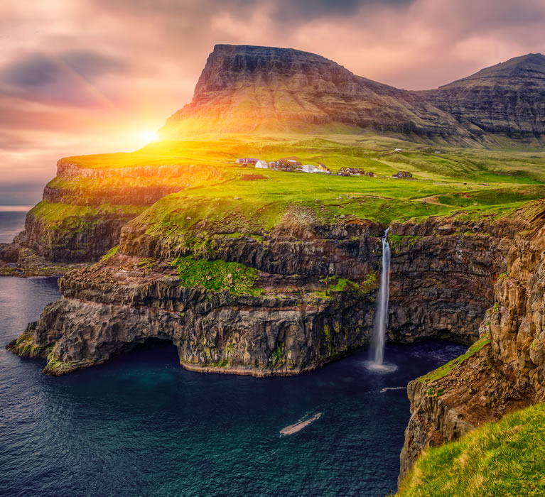 Færøyene har en imponerende natur som vil ta pusten fra deg. Øyene er kjent for sine dramatiske fjellandskap, bratte klipper og grønne daler. En av de mest ikoniske severdighetene er Vestmanna Sea Cliffs, som er en spektakulær klippeformasjon som strekker seg over 600 meter opp fra havet. Her kan du ta båtturer og se de imponerende fuglefjellene som befolker klippene.