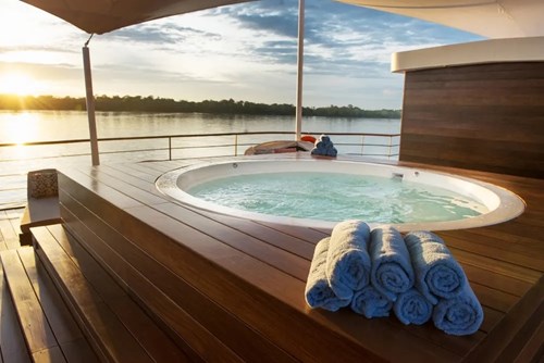 3. Slapp av i ditt utendørs jacuzzi ombord på vår førsteklasses elvebåt på Amazonas