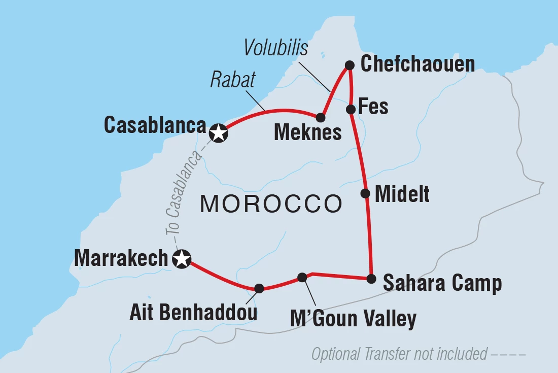 Morocco is an intoxicating fusion of cultures, with a history as diverse and varied as the colours woven into each carpet sold on the street. Uncover the essence of this enticing country on a two-week adventure through ancient cities, medieval bazaars and high mountain villages. Admire the impressive Roman ruins of Volubilis, go behind the scenes of a film makers heaven in Ait Benhaddou, discover the dramatic red dunes of the Sahara Desert and stroll through the blue streets of Chefchaouen. Journey into Morocco’s heart through its food, religion, language and culture to better understand this exciting nation and passionate people.