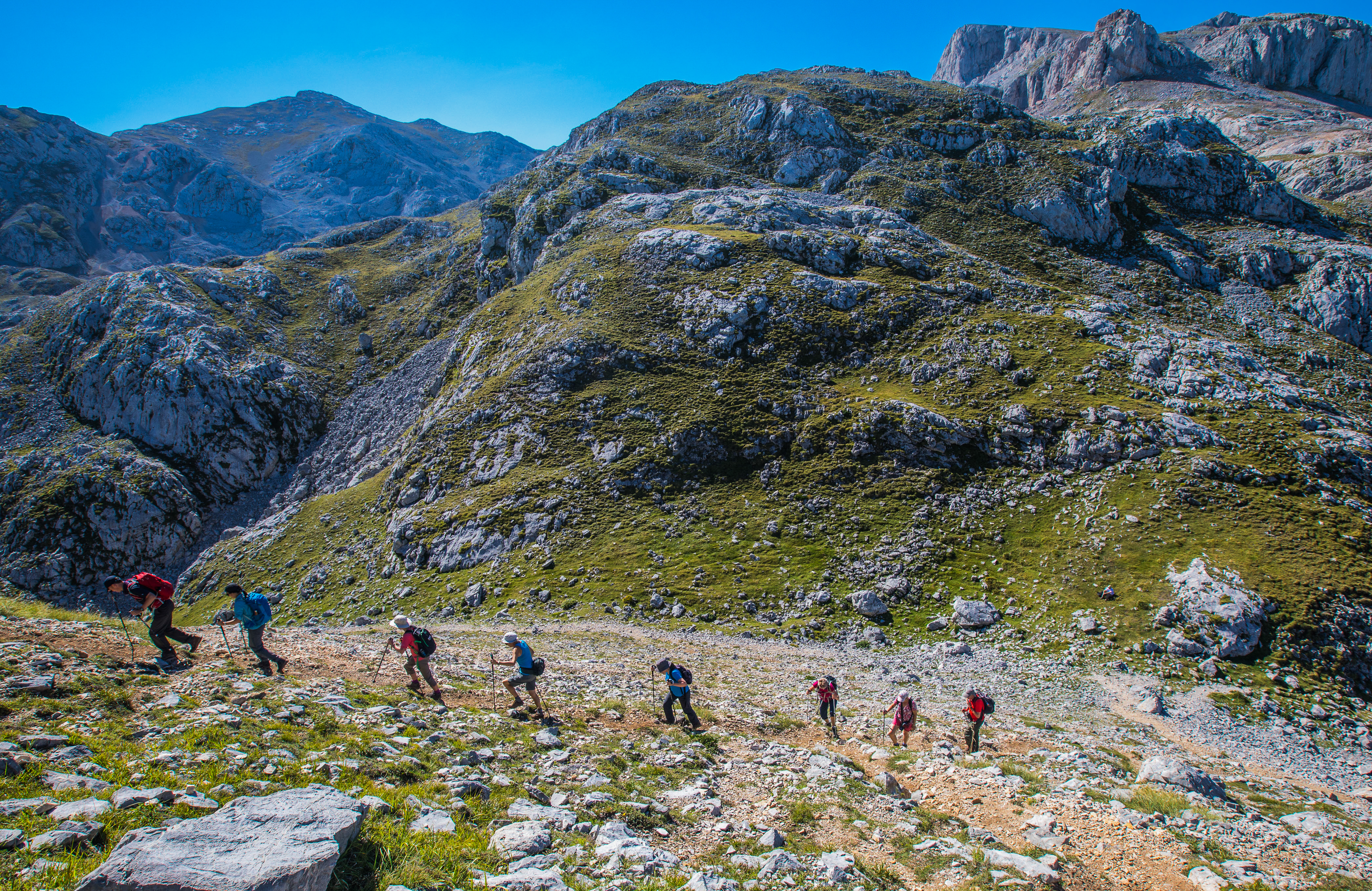 Over the course of the week, we tackle two classic gorges and one peak in each of the three massifs in the Picos de Europe. Most of the walking is on shepherds’ paths, disused mining paths and some sections of Roman roads, although final ascents can be quite rough underfoot.